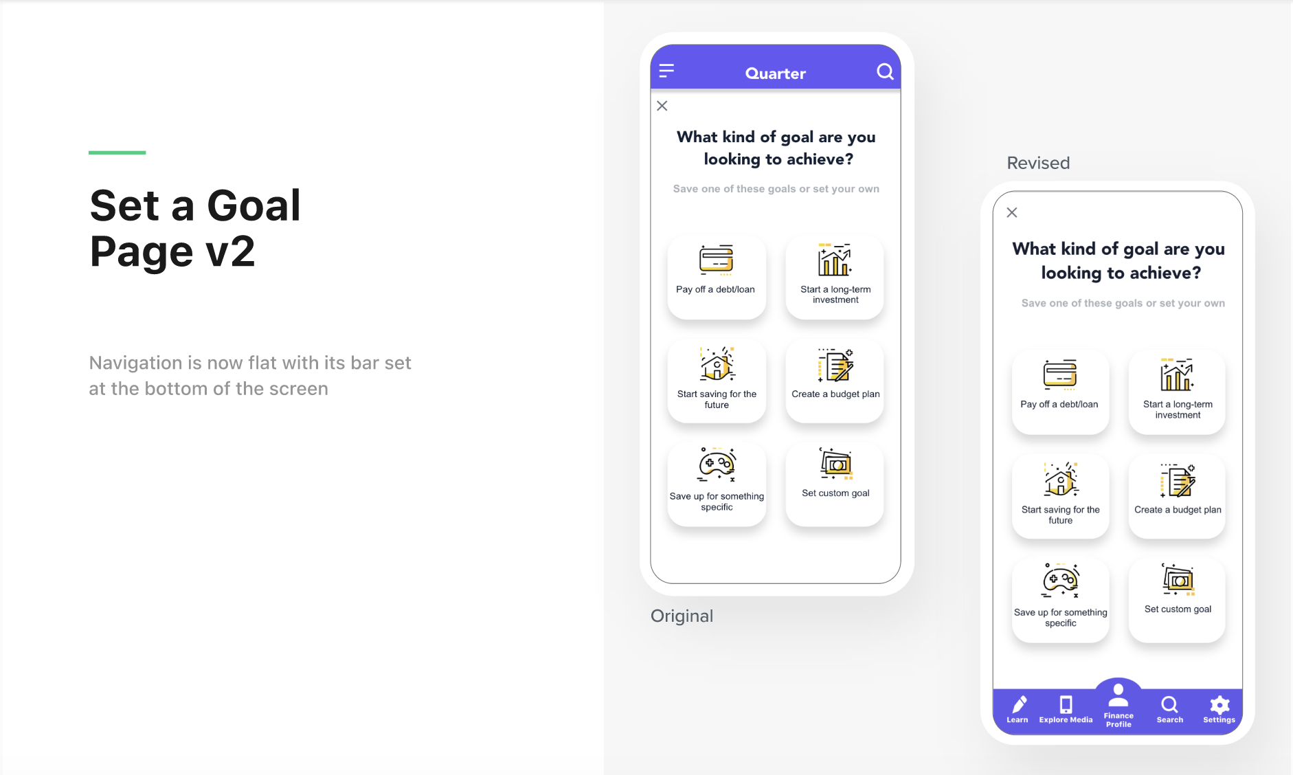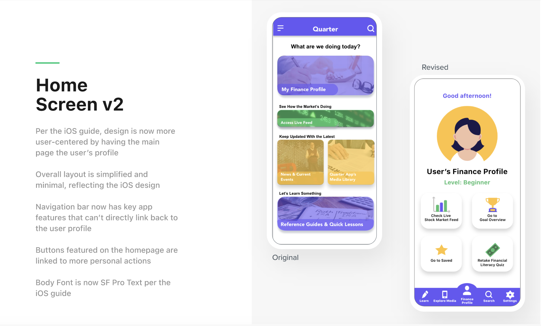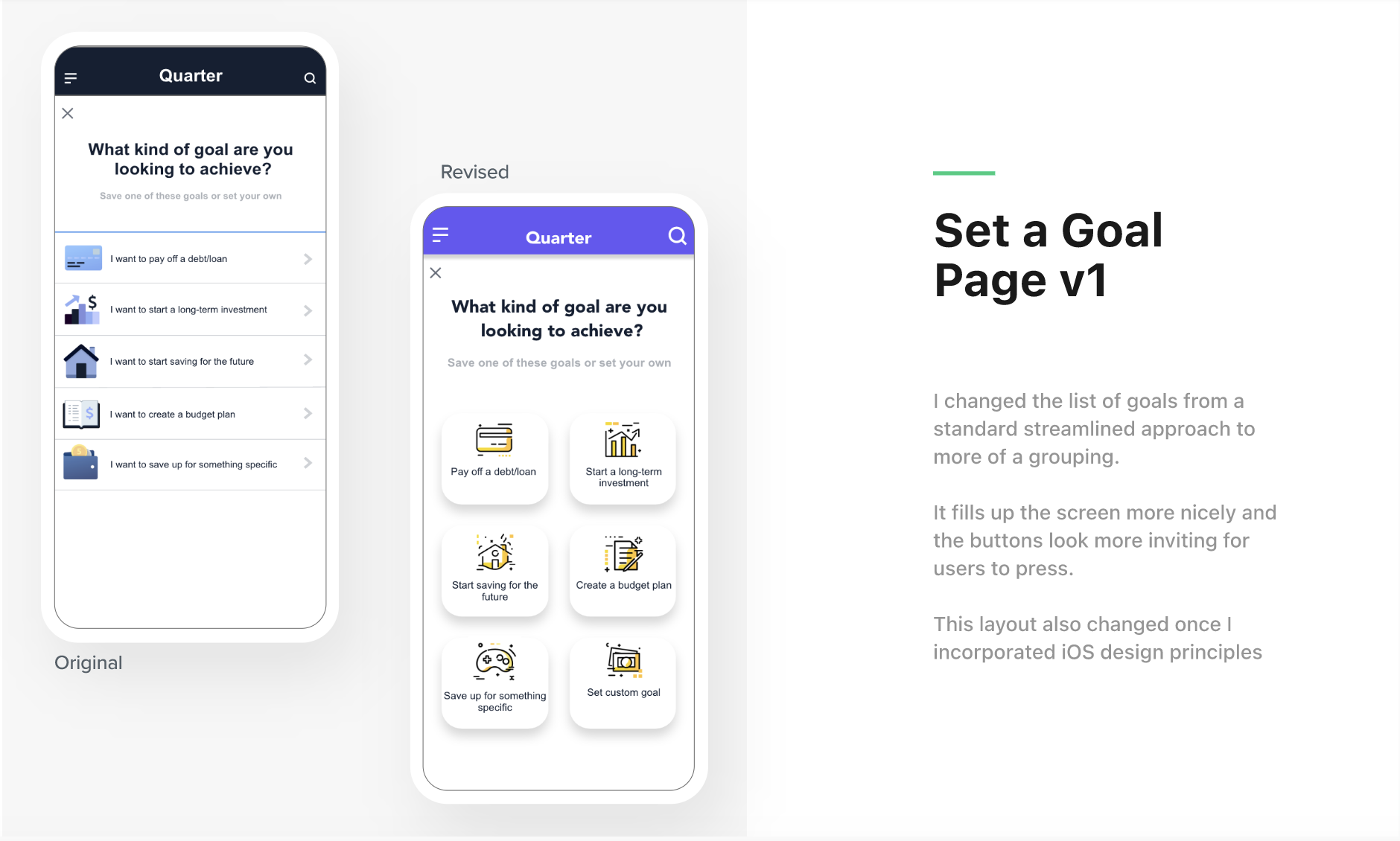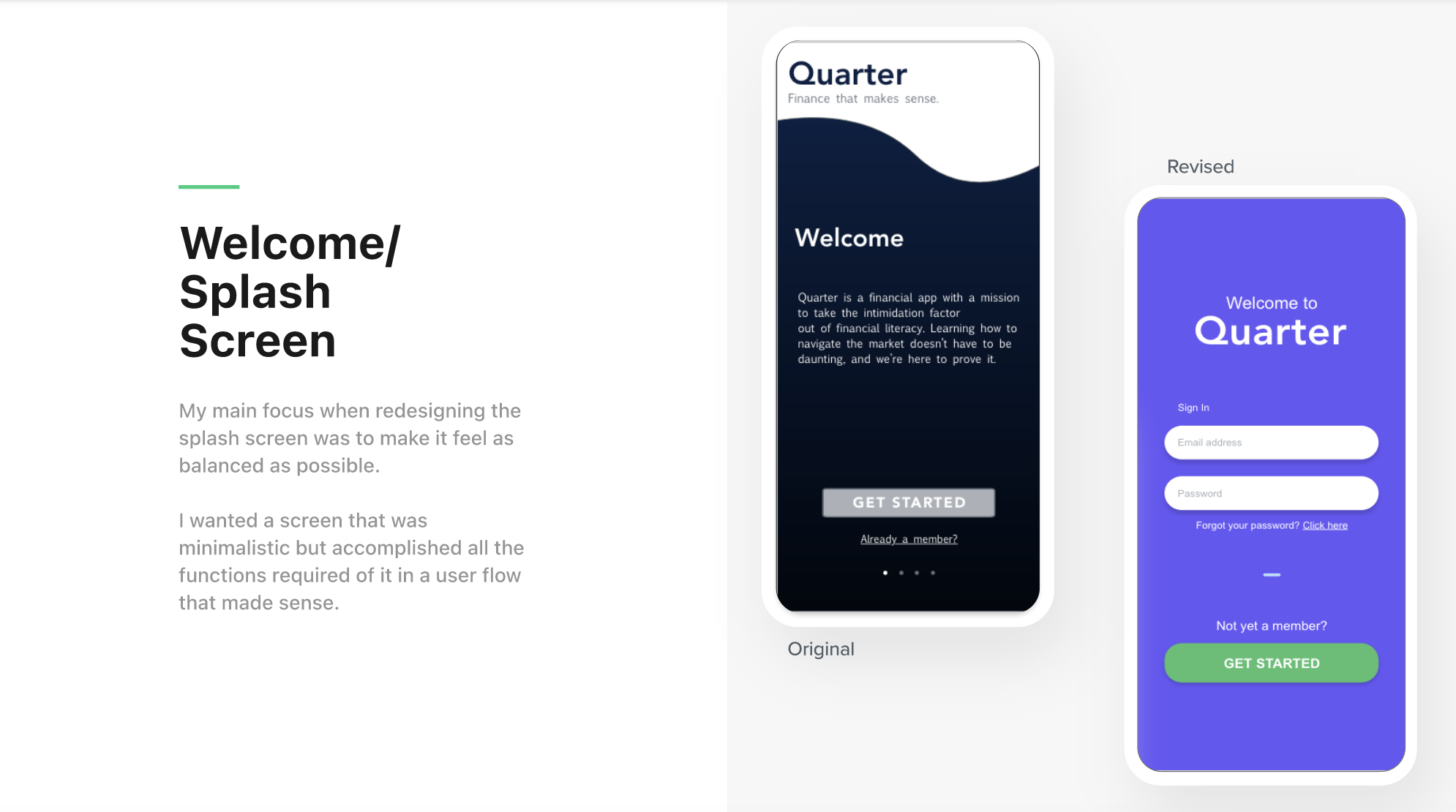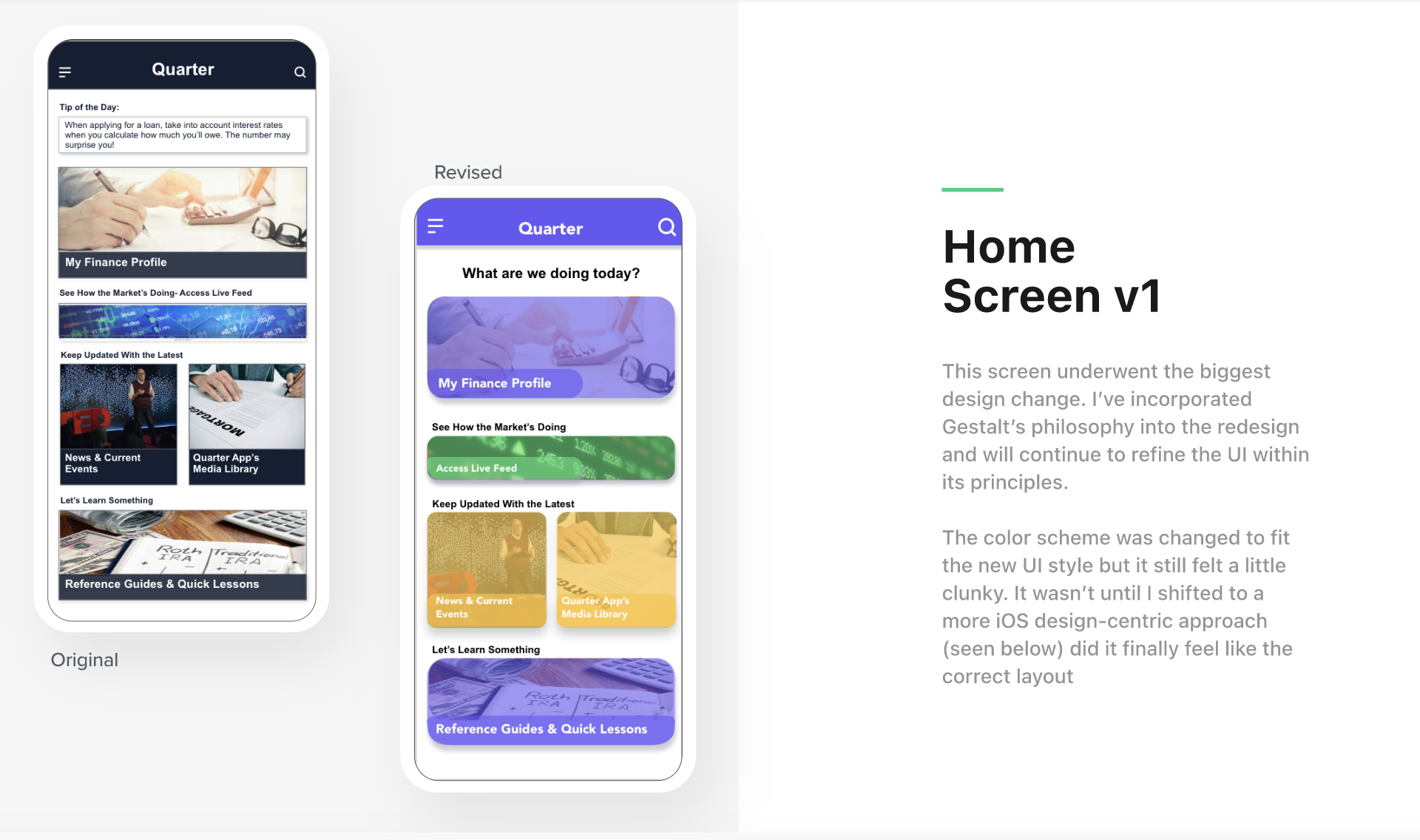 Quarter AppDesign & Copy Copy highlights from my UX/UI case study capstone. Click here to check out the full case study.